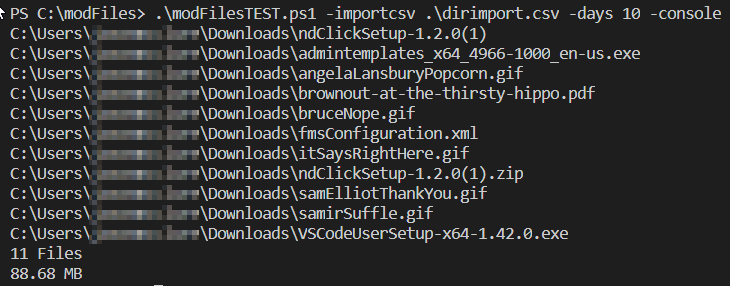 我正在尝试运行以下代码,从.csv文件导入目录列表(如果选择作为参数),然后执行foreach循环,以确定.csv文件中列出的目录中在过去XX天中修改了哪些文件。