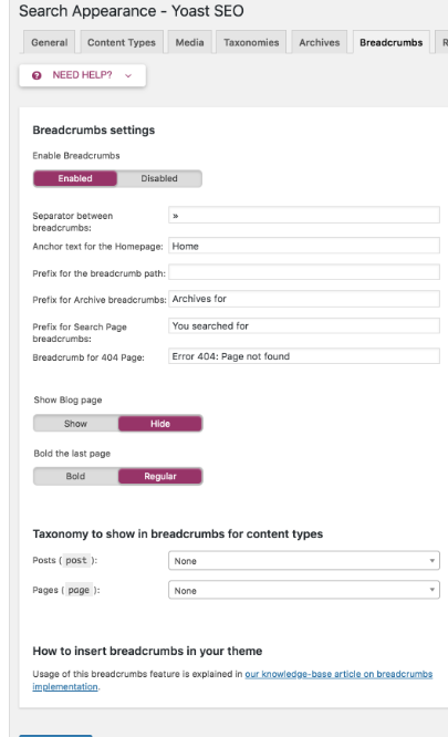 在创建面包屑的解决方案前几天,我也面临着同样的问题。Yoast提供了创建面包屑的工具。