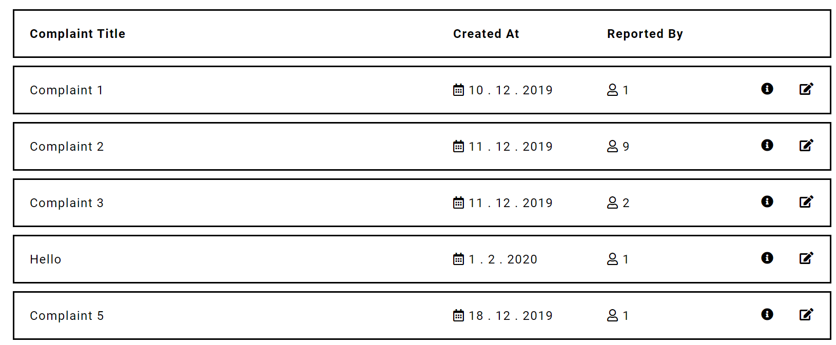 </table>请注意,我在这里设置了整个行的投诉ID。这是为了方便地提供整个行的数据,因为您将来可能会添加其他操作。
