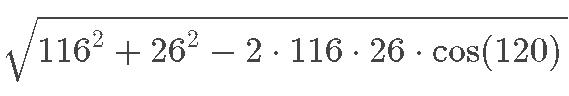 math.sqrt(116**2+26**2-2*116*26*(math.cos(math.radians(120))))https://stackoverflow.com/questions/59860687