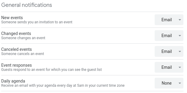 如果希望为事件的创建、更改和取消设置通知,但不希望设置事件响应,则需要为日历本身设置此通知。然而,不幸的是,这并不是可以用API完成的,需要在用户界面本身中设置。