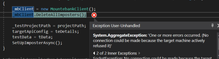 _mbClient.DeleteAllImposters();HttpRequestException:由于目标机器主动拒绝连接,所以无法建立连接