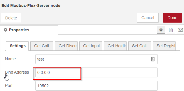 扩展我的评论,因为这似乎可以回答你的问题。如注释所述,Modbus-Flex-Server中的IP地址字段是“Bind地址”(截图如下),这控制Modbus从服务器将侦听哪个IP地址。将此设置保持为0.0.0.0意味着它将侦听计算机上设置的所有IP地址。