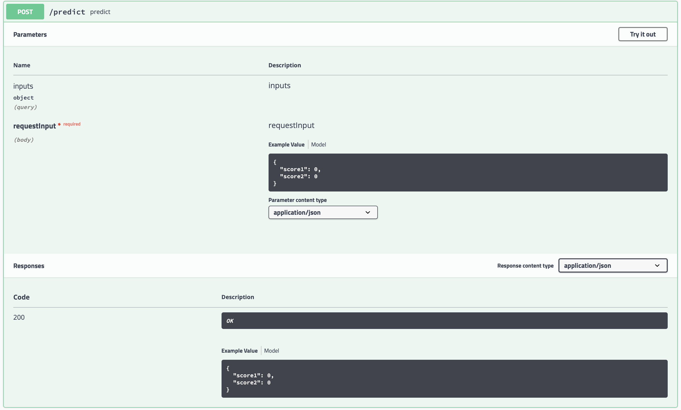 public ResponseEntity predict(Map<String, Object> inputs, @RequestBody RequestInput requestInput) {