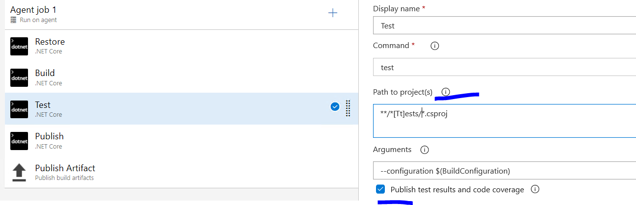 您可以在Microsoft中查看dotnet核心yaml管道示例。如果您已经遵循了这个示例,但仍然无法运行测试。您很可能错误地指定了烟雾测试项目的路径。管道任务找不到测试项目。
