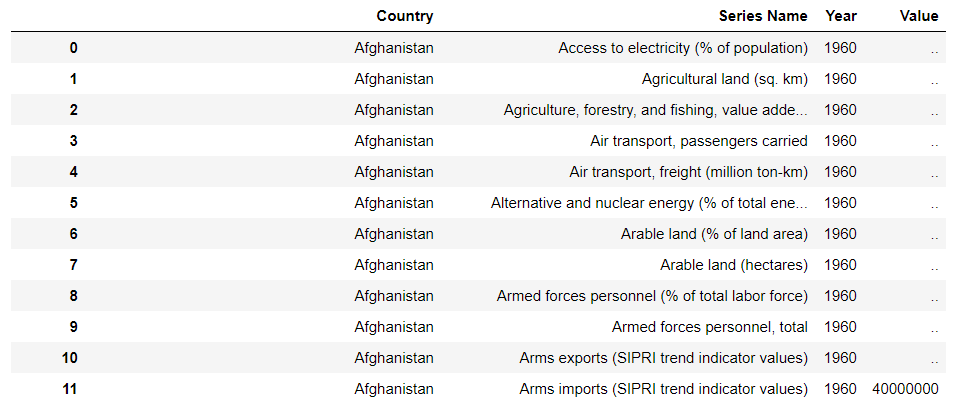mydata = mydata.pivot(index=['Country', 'Year'], columns='Series Name', values='Value')我犯了个错误: