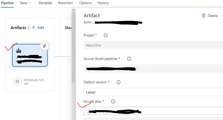 对于上面的例子,您将在文件夹$(System.DefaultWorkingDirectory)\artifact_alias\Test中找到测试文件,并在$(System.DefaultWorkingDirectory)\artifact_alias\drop中找到要部署的构件。