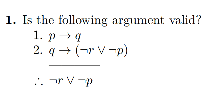 在这一点上,在我看来,证据已经完成。我已经证明了这个结论(∨‘p)是正确的。但后来我回头看,我看到我的老师还在继续。在第6行中,他假设为“p”,然后再在第7行上写(“∨”)。现在,他结束了“证明”(8.r∨,3-7,并将证据除以案例)。为什么他不像我一样停在第6行,继续假设?我是错了还是我的证据完成了?