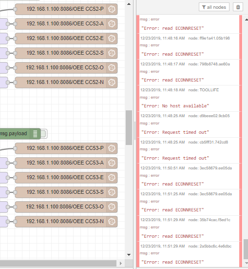 此错误发生在许多不同的进水数据库节点上,而不是一个特定的事件。不需要重新启动Node-RED就可以解决这个问题吗?