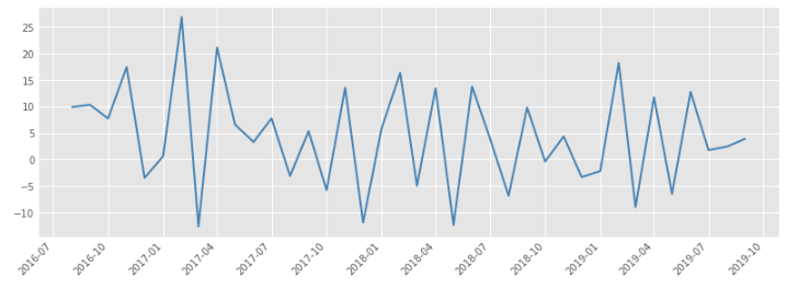 38 2019-10-01 65733 11050.0 76783.0 NaN我需要绘制一个“客户增长”专栏的时间序列。