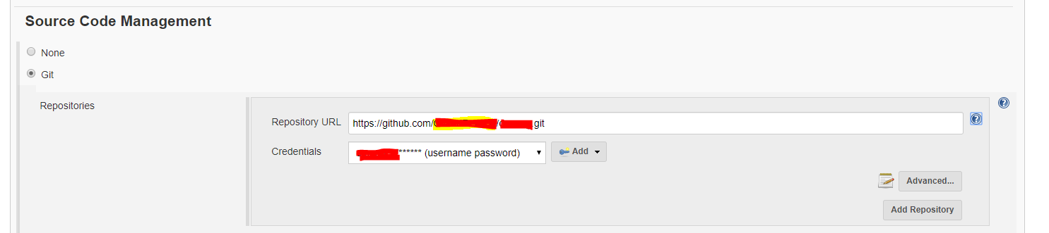 我一直在使用Jenkins中的Git插件从GitHub存储库中提取源代码。我一直在使用UserName和密码进行身份验证。