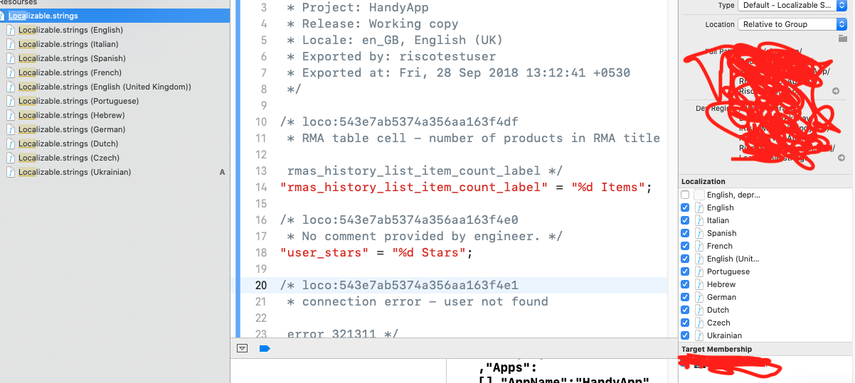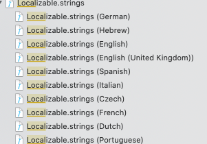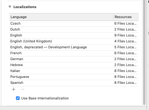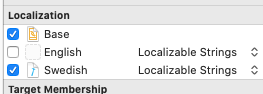 我有和现有的使用Base localisation.which的项目都有文件Localizable.strings(Base)