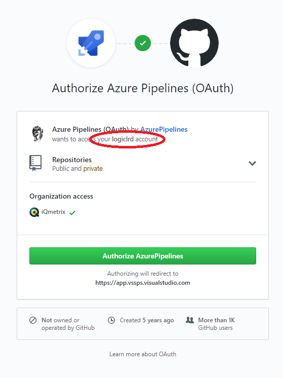该授权由组织中的其他人设置,工作正常,我可以查看组织的所有存储库,并设置一个新的管道。但是,如果我关闭窗口并尝试重新打开管道编辑器,就会立即重定向到GitHub页面,以授权访问我的个人帐户。编辑基于“”连接创建的管道并不使用该连接,而是希望基于我可以访问的任何单独帐户建立一个新的连接。