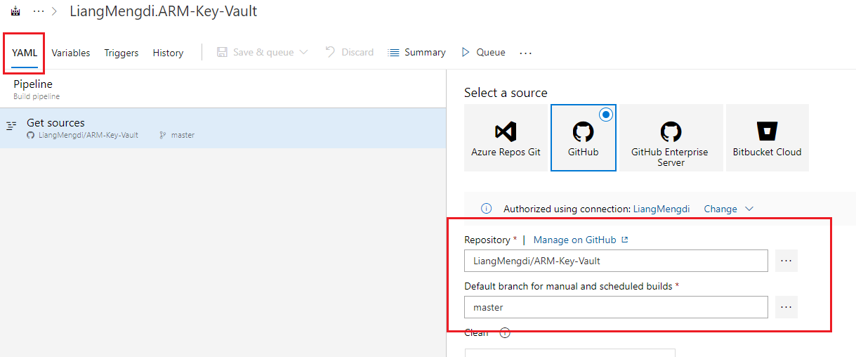 更新:我认为这个问题是基于一个根本的误解。在创建构建管道定义时,我会选择保存的服务连接(屏幕快照中的“”),然后Azure DevOps将继续提示访问我的个人帐户。这使我认为构建管道以某种方式连接到我的个人帐户,因此,如果我的帐户将来会消失或者无法访问存储库,构建管道就会停止工作。