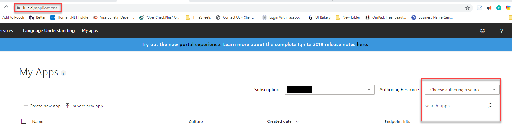 azure_cog_language_service_name: "xxxxxxxxxxxxxxxxxxxxxxxxxxxxx" 请找到我的路易斯门户截图张贴在下面。我的Luis应用程序将显示在“创作资源”下拉列表中。但事实并非如此。