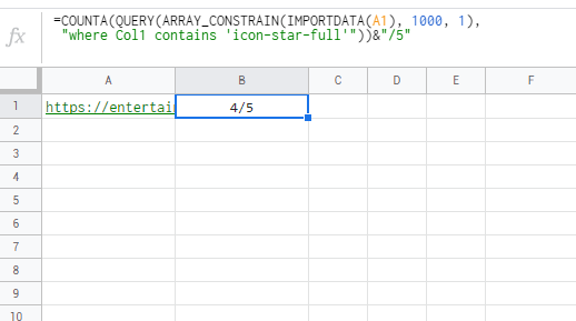 "where Col1 contains 'icon-star-full'")))&"/5"其中A1是您的URL