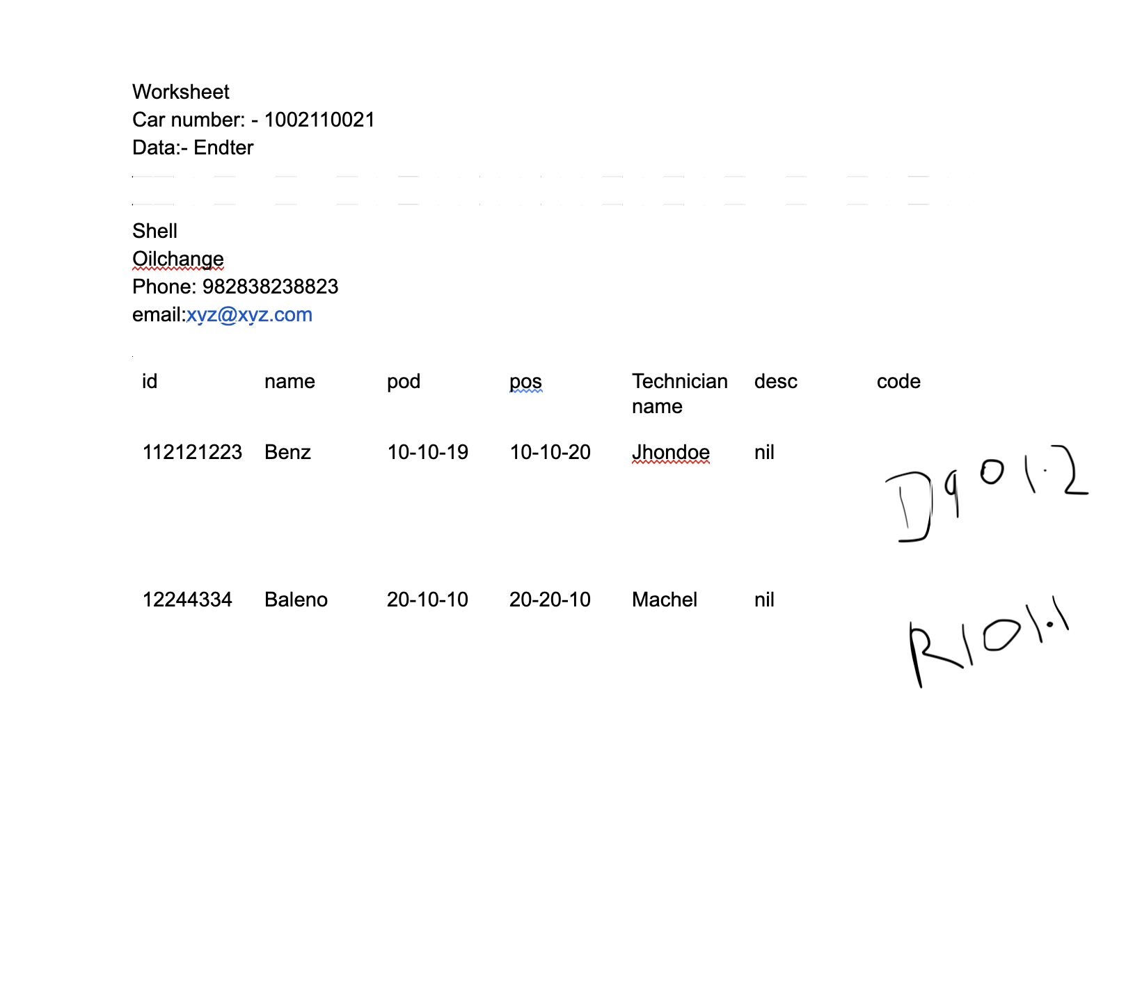 12244334 Baleno 20-10-10 20-20-10 Machel nil \ \它似乎不捕获手写文本,您可能需要使用机器/深入学习来训练您自己的分类器,但是它对于自动文本非常有效。我们使用--psm 6配置选项来假设一个统一的文本块。查看here以获得更多配置选项