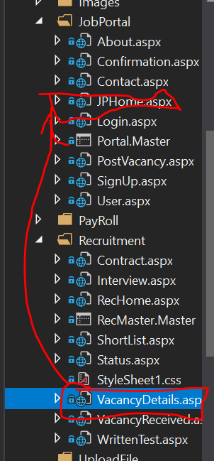 我有两个文件夹与自己的网页。在一个招聘文件夹的网页上点击按钮,我想导航到JobPortal文件夹的网页作为新页面。