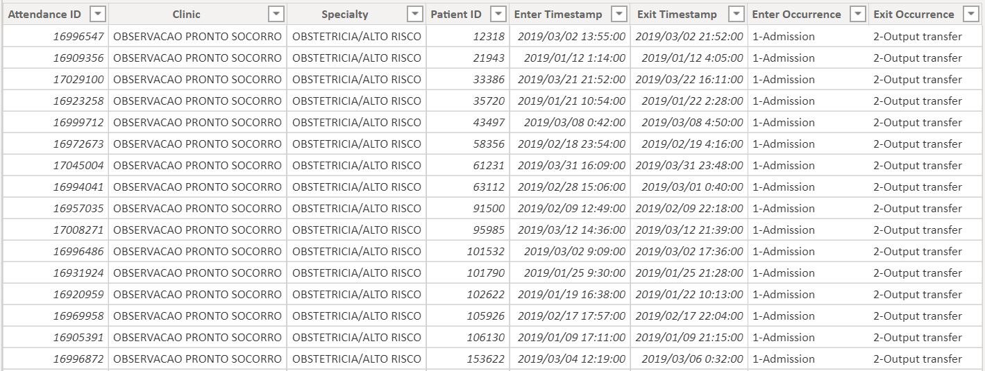 请注意,当收集数据时,病人可能仍然留在该部门。在这种情况下,该病人的exit时间戳为空白。