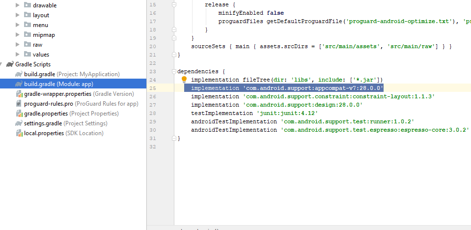 implementation 'com.android.support:appcompat-v7:28.0.0'