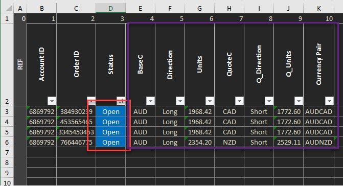 Const curColumn As Long = 4 'index will start a column 4 "Status"