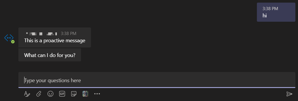 我用Yeoman创建了我的机器人,所以我有了一个运行示例,它可以响应传入的消息。https://learn.microsoft.com/es-es/azure/bot-service/javascript/bot-builder-javascript-quickstart?view=azure-bot-service-4.0