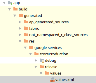 如果您不确定google-service.json是否已被正确解析,您应该查看app>build>generated>res>google-services>buildType>values>values.xml.If,一切正常,那么该文件将包含与google-service.json文件中相同的数据。