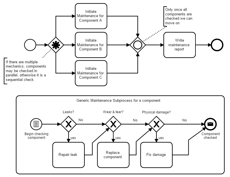 我需要帮助使用BPMN来建模这个场景。我可以使用很多活动和一个活动调用来完成它,但是必须有一个更有效的方法。