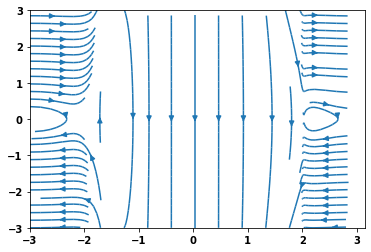 plt.streamplot(x, y, U, V, density=[0.5, 1])