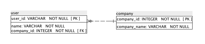 如何将选择操作限制在表company上,以便只允许选择与user上的用户关联的公司记录(Fk)?