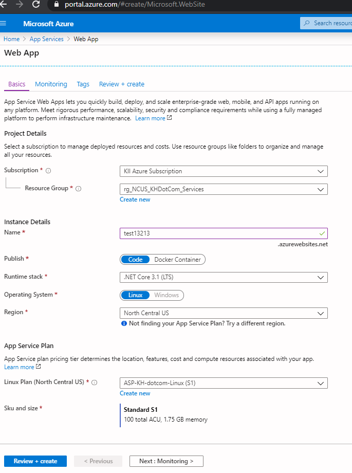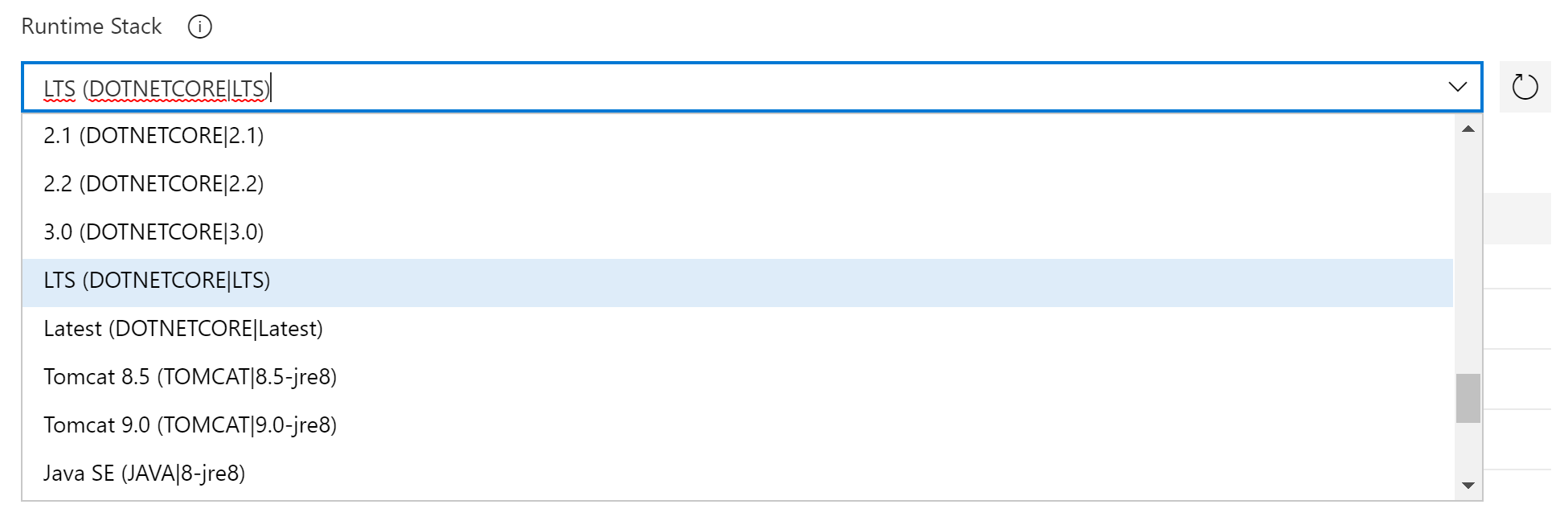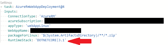 这是使用azure AppService部署任务从Azure管道发布的。这里没有3.1,所以我选择了LTS