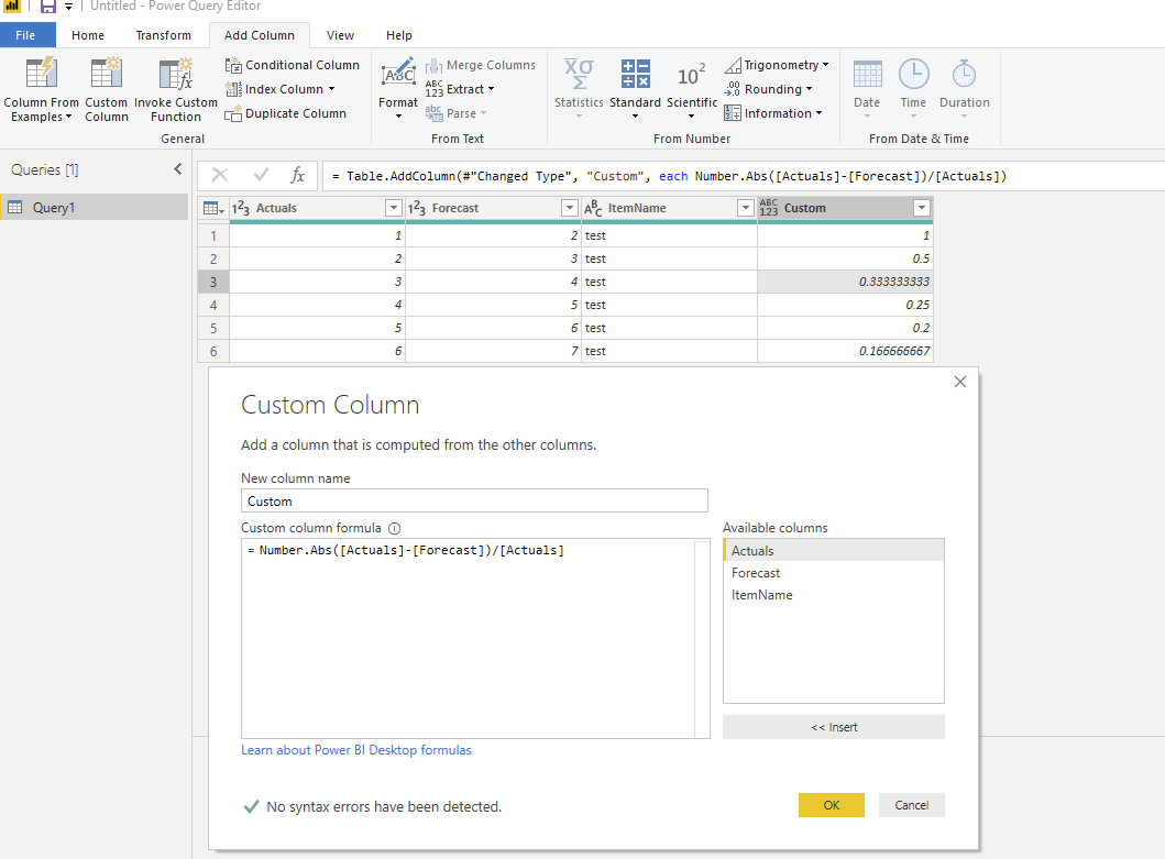 或者,您可以在看来适合我的查询编辑器中创建自定义列。