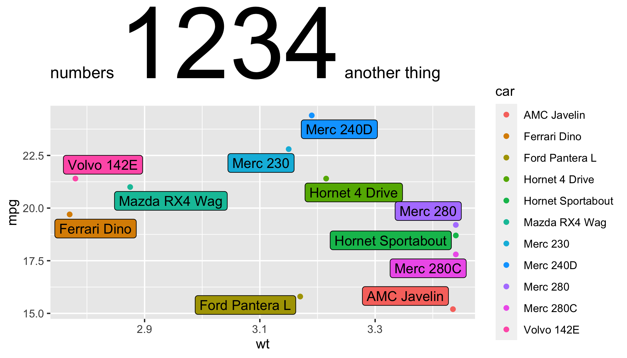 p <- ggplot(dat, aes(wt, mpg, label = car)) +