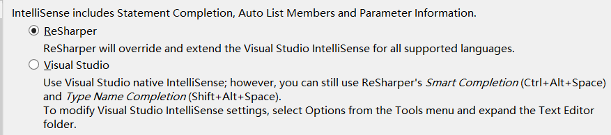 所以在使用中,您只能使用其中的一个(Visual Studio Intellisense和Resharper Intellisense),但不能同时使用它们。