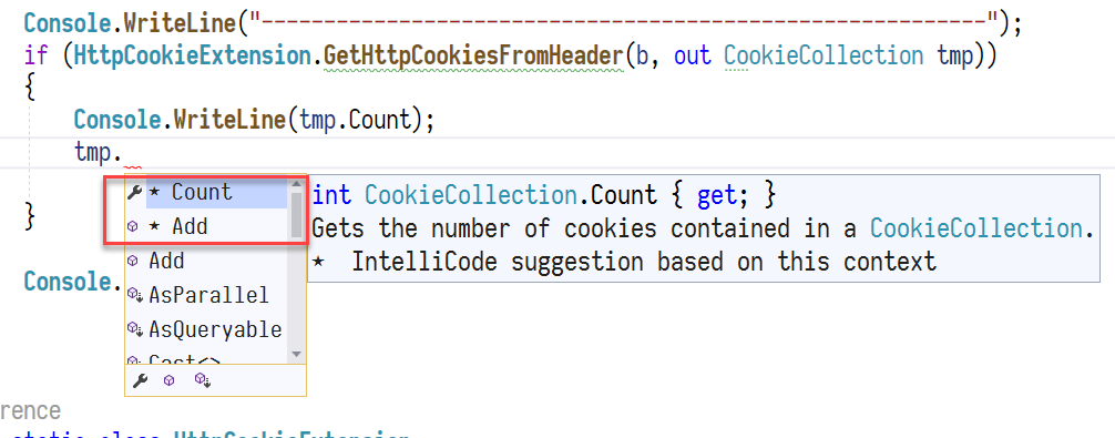 最近版本的Visual添加了AI辅助的IntelliSense。见下图,星号标记的项目。