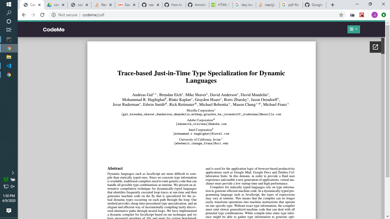 };next以启动开发服务器并在浏览器中导航到该页面后,我会发现内存不足的JavaScript堆出现了错误。即使我的电脑有足够的内存,我也不确定这是否真的会导致PDF渲染-更不用说使用dangerouslySetInnerHTML的危险了。看起来,更好的解决方案可能是拥有一个实际的React组件,而不是尝试嵌入HTML文件。