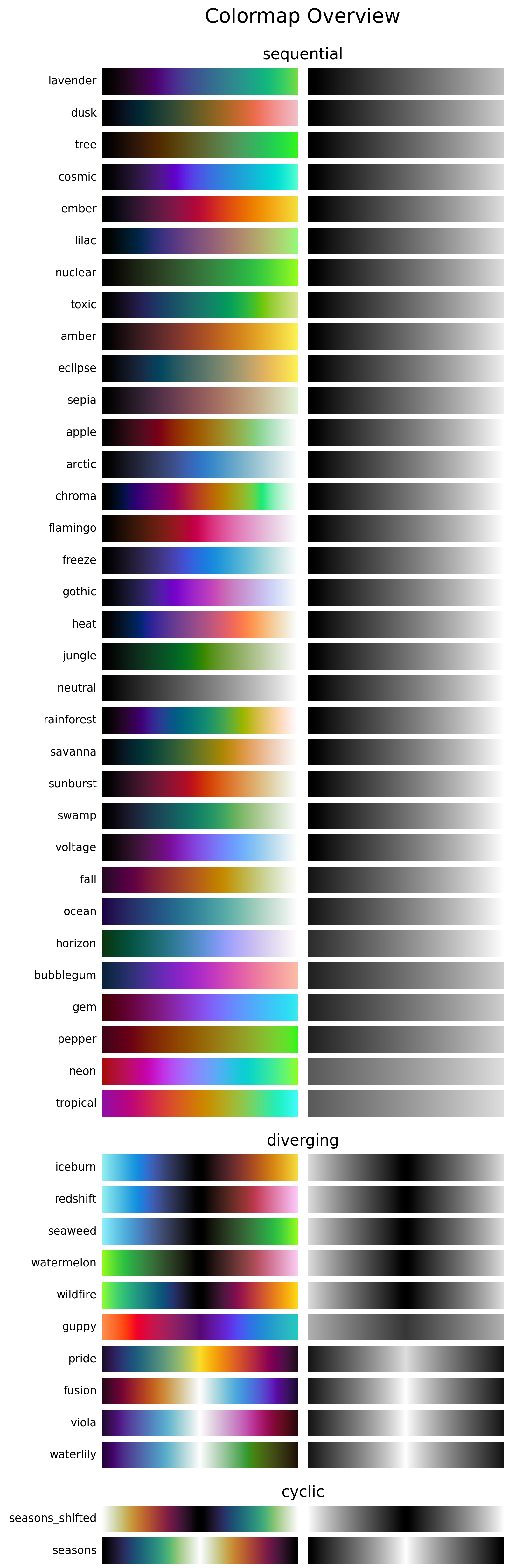 老实说,我已经厌倦了在许多流行的绘图软件中实现的5种柱状图(viridis,等离子,inferno,magma,cividis) (R-g图,python-matplotlib,matlab,JMP等)。我相信你们中的一些人也会觉得同样单调..。