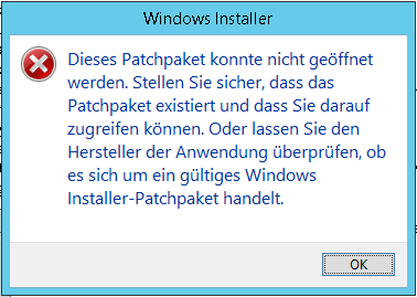 Das Updatepaket konnte nicht geöffnet werden. Stellen Sie sicher, dass das Updatepaket vorhanden ist und dass Sie darauf zugreifen können, oder wenden Sie sich an den Hersteller, um sicherzustellen, dass es sich um ein gültiges Updatepaket handelt.