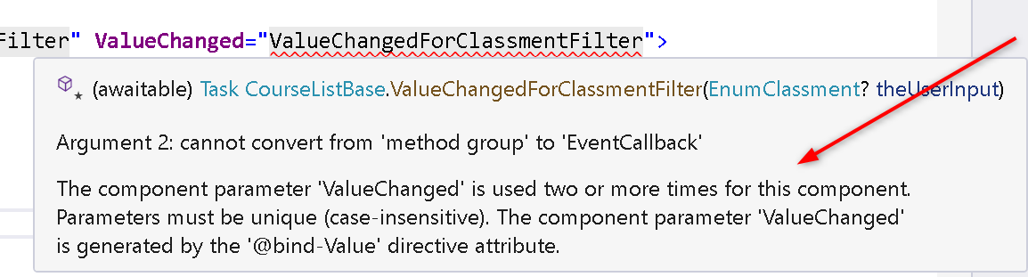 <InputSelectCustom Value="@CurrentFilterModel.ClassmentFilter" ValueExpression="@( () => CurrentFilterModel.ClassmentFilter )" ValueChanged="@( (EnumClassment? s) => ValueChangedForClassmentFilter(s) )">
