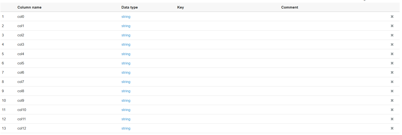 潜在标题中的每一列都以字符串数据类型解析。