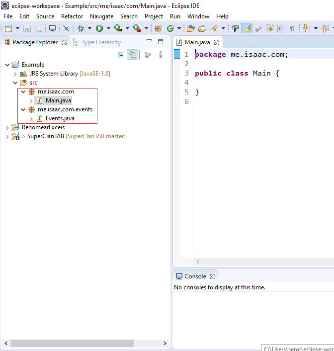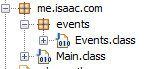 我希望me.isaac.com.events子包留在me.isaac.com父包中,如下所示: