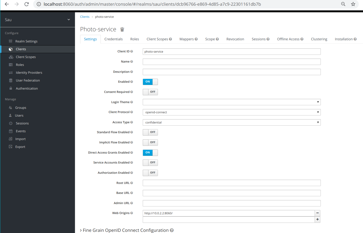 secret: 69a3e80c-8360-42df-bcec-b6575a6949dc这样,令牌发行者就会匹配。这可能需要在keycloak中禁用外部请求的SSL要求,或者配置正确的SSL通信。如果这是为了生产,做正确的方式。
