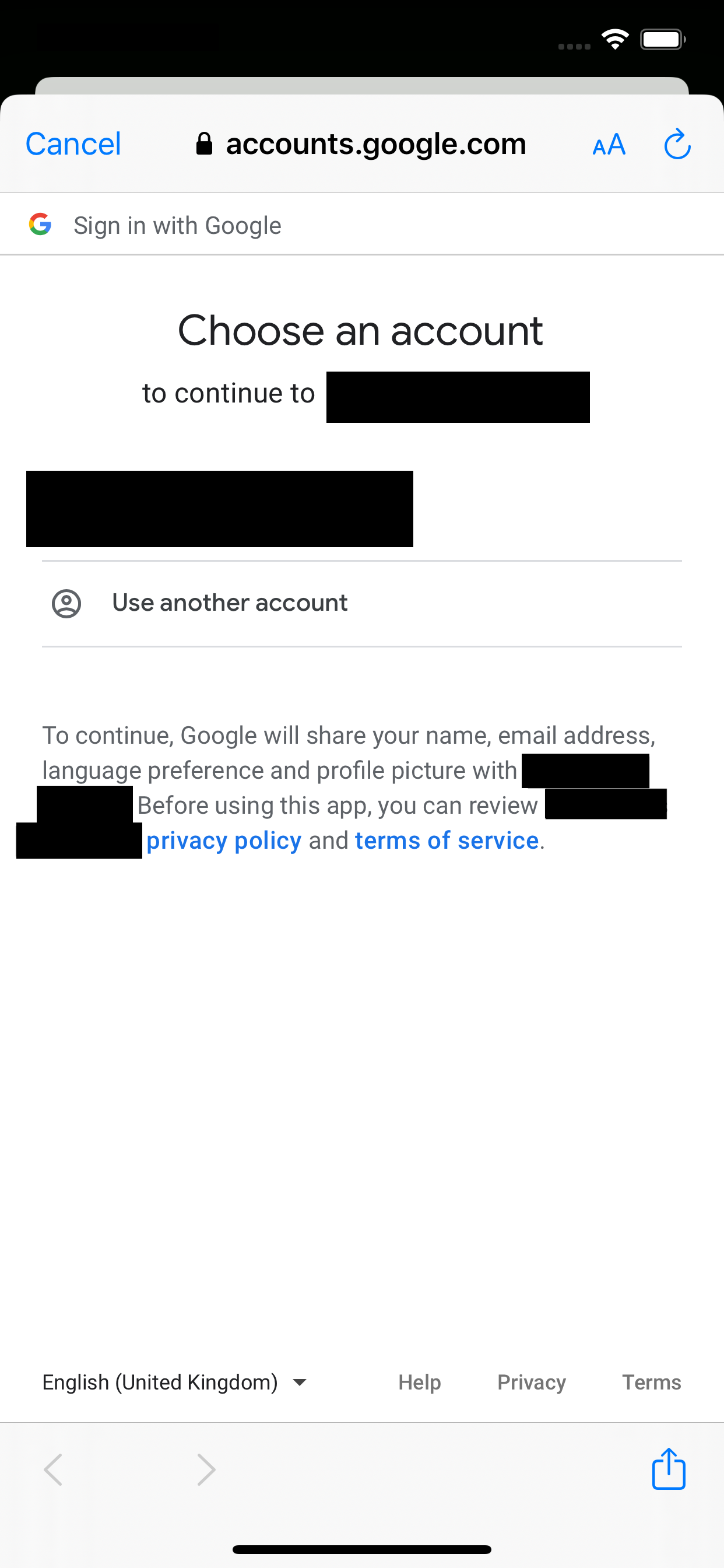 这是iOS应用程序用于外部身份验证的零标签模式。它可以看起来不同的应用程序。
