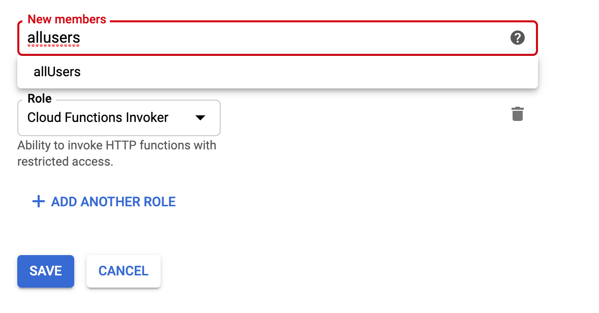 函数默认需要身份验证。您可以指定某个函数是否允许在部署时或部署之后进行未经身份验证的调用。