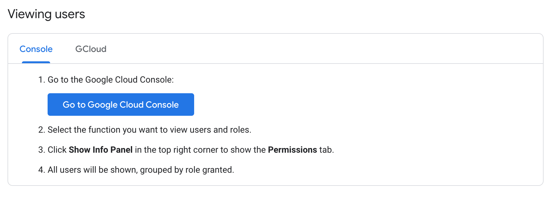 2-找到“查看用户”部分,然后点击“转到Google控制台”按钮。