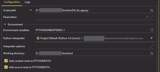 编辑:谢谢你的建议。附加的是Run配置和Project解释器配置。据我所知,环境是一样的。