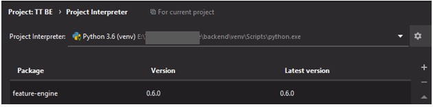 使用Python3.6venv作为解释器在PyCharm 2020.1.2 Win10中运行Community。通过项目解释接口安装包功能引擎,安装良好,并显示在列表中。我可以在import feature_engine控制台中成功地使用PyCharm,并且可以很好地使用它。我还可以在终端中使用这个导入语句执行一个.py文件,并且还可以很好地工作。但是,当我尝试使用导入语句运行相同的.py文件时,我得到: