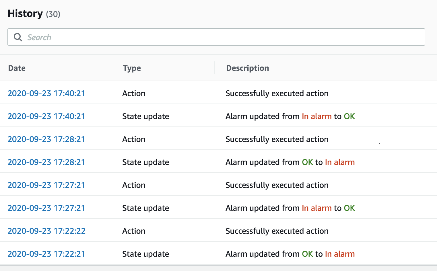 但在报警日志中,“处于警报状态”仅在17:22世界协调时-- 17:18时段后4分钟才触发,有2次以上的错误。这并不是收到通知的延迟,而是与我的预期相比,状态变化的延迟。在状态更改后的几秒钟内正确地接收到通知。