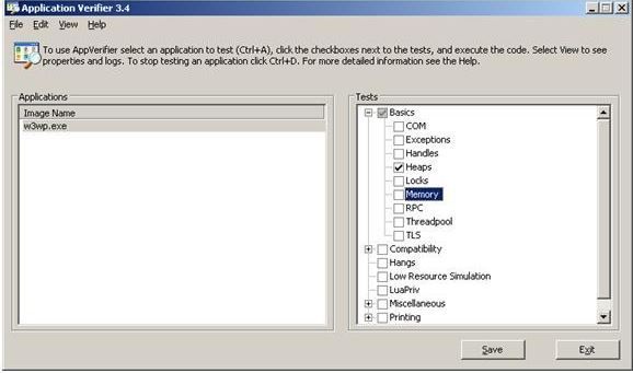 此外,我尝试在Visual下运行appverif.exe (在系统和syswow64中),我看到: