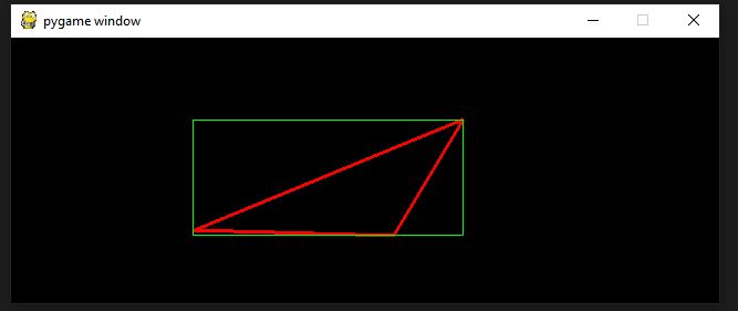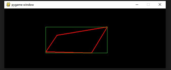 rect = pygame.draw.lines(screen, RED, True, points, 3)